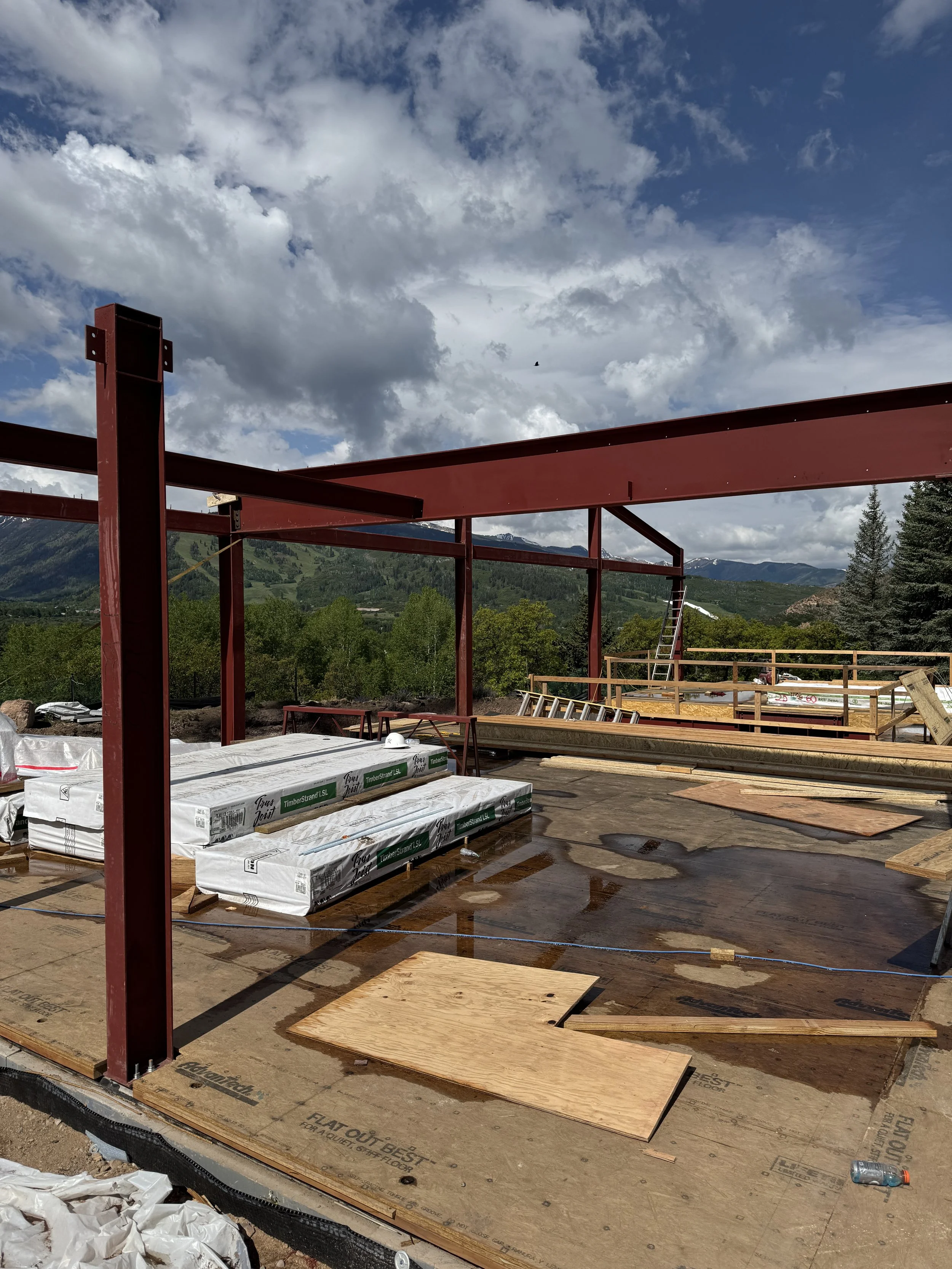 Structural steel framework built for a new Aspen residence — engineered for strength, precision, and long-term reliability. Alpine Steel delivered a clean, efficient installation, creating the backbone for a modern mountain home.